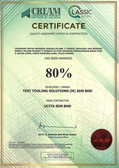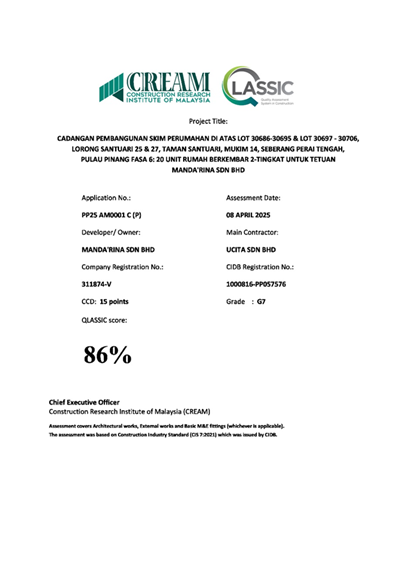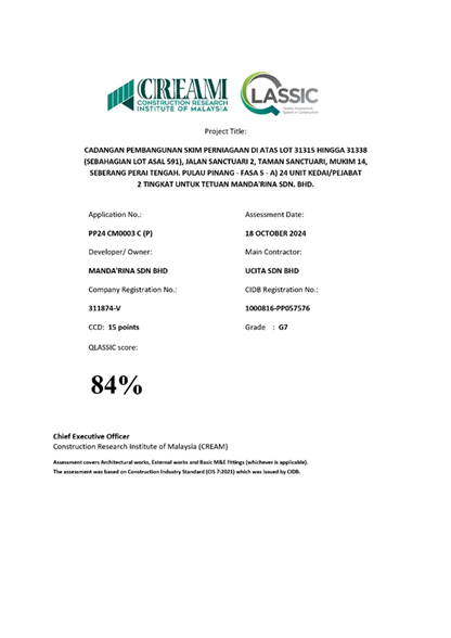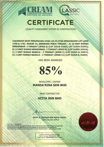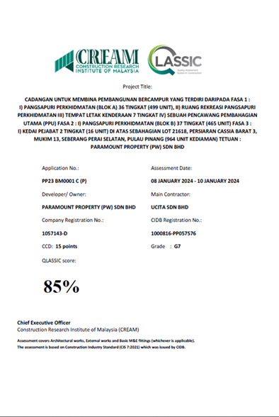 With over 25 years of experience, Ucita has consistently demonstrated excellence in workmanship, highlighted by its impressive QLASSIC score of 87 marks. The company has built lasting partnerships with major developers like IJM Land, Paramount Property, and DNP Land.